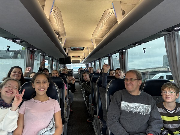 Ein ungewohnter Anblick: Zwei riesige Busse standen am Mittwoch plötzlich vor der Schule und sammelten alle Kleinen und Großen ein.