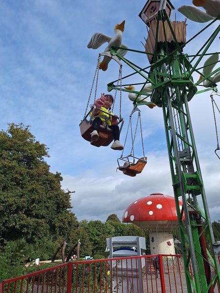 Im Park angekommen ging jede Stufe direkt los: Die einen schauten sich erstmal vorsichtig um, die anderen suchten nach dem gemeinsamem Treffpunkt, und eine ganz mutige Stufe wagte sich direkt auf das Ketten-Karussell!