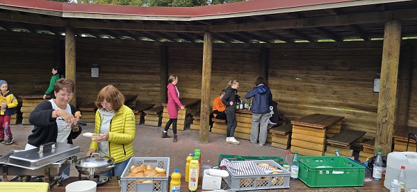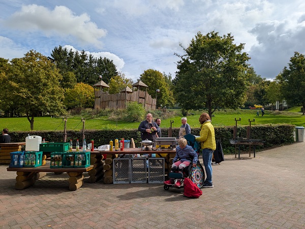 ![]() | Während die meisten auf der Albatros-Bahn radelten, fleißig im Sand baggerten oder die Sommerrodelbahn hinab sausten, gab es 4 tüchtige Erwachsene: Herr Schmitt, Frau Bornemann, Herr Hohmann und Herr Wiegand hatten ein erstklassiges Buffett vorbereitet: Neben leckeren Getränken lagen hier verschiedene Würste und Grillkäse auf dem Rost. |