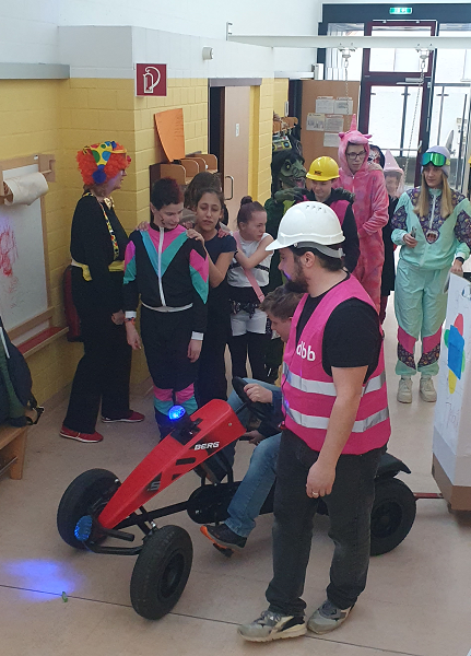 ![]() | Dafür gab es extra einen Faschings-Wagen. Der hatte laute Party-Musik und viele Süßigkeiten dabei. |