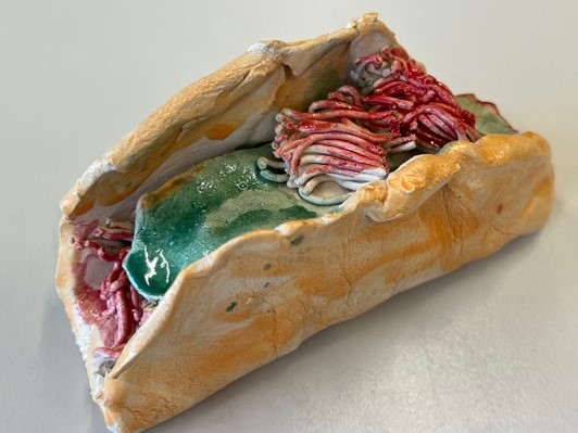 ![]() | Das ist ein Taco. Die Füllung ist mit Fleisch und Salat. - John |